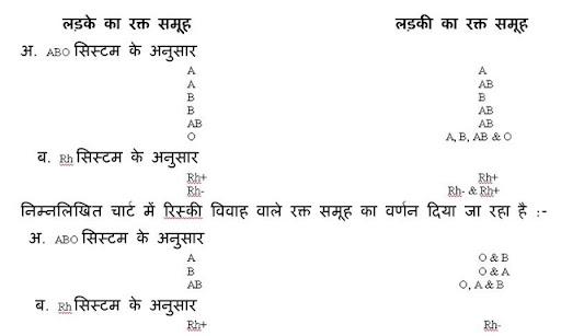 उपर्युक्त रक्त समूह वाले चार्ट से आपको स्वस्थ और सुखी परिवार के लिये लड़का और लड़की ढूंढने में सहयोग मिल सकेगा।